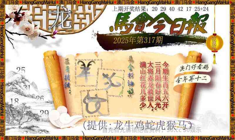 317期: 马【12.24】牛【05.17】龙【14.38】 猴【22.46】蛇【25.49】虎【16.40】 |
